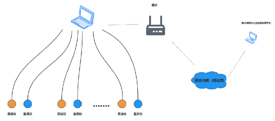 直流避雷器在線監(jiān)測系統(tǒng)主要由直流在線監(jiān)測儀、直流故障錄波儀以及后臺(tái)在線監(jiān)測系統(tǒng)三個(gè)部分組成。直流避雷器在線監(jiān)測系統(tǒng)接入了現(xiàn)場的網(wǎng)關(guān),通過網(wǎng)關(guān)將數(shù)據(jù)推送至南方電網(wǎng)電力全域物聯(lián)網(wǎng)平臺(tái)。
